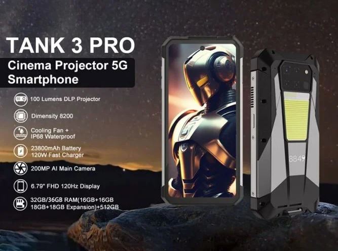 UNIHERTZ به طور رسمی از گوشی هوشمند مقاوم 8849 Tank 3 Pro رونمایی کرد. این گوشی هوشمند دارای طراحی مقاوم است و دارای پروژکتور، ظرفیت باتری زیاد و پشتیبانی از شبکه 5G است.